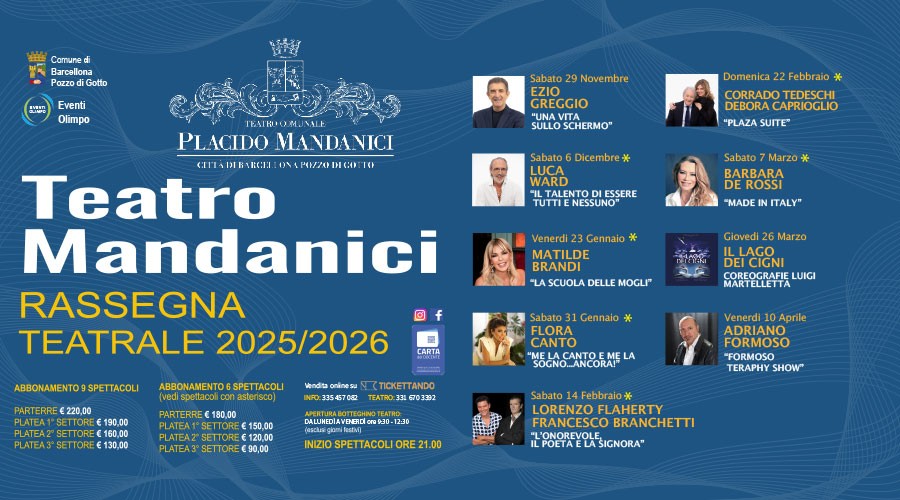 Abbonamento 9 eventi Teatro Mandanici - Rassegna 2025-26